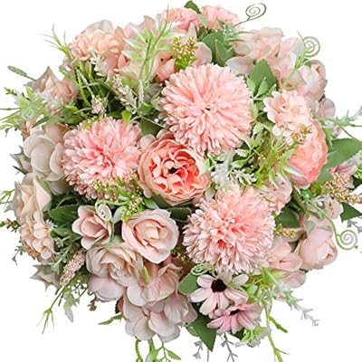 Artfen artificial flowers fake silk hydrangea flower simulation hand tied bouquet lu lotus bouquet for home hotel office wedding party garden craft.